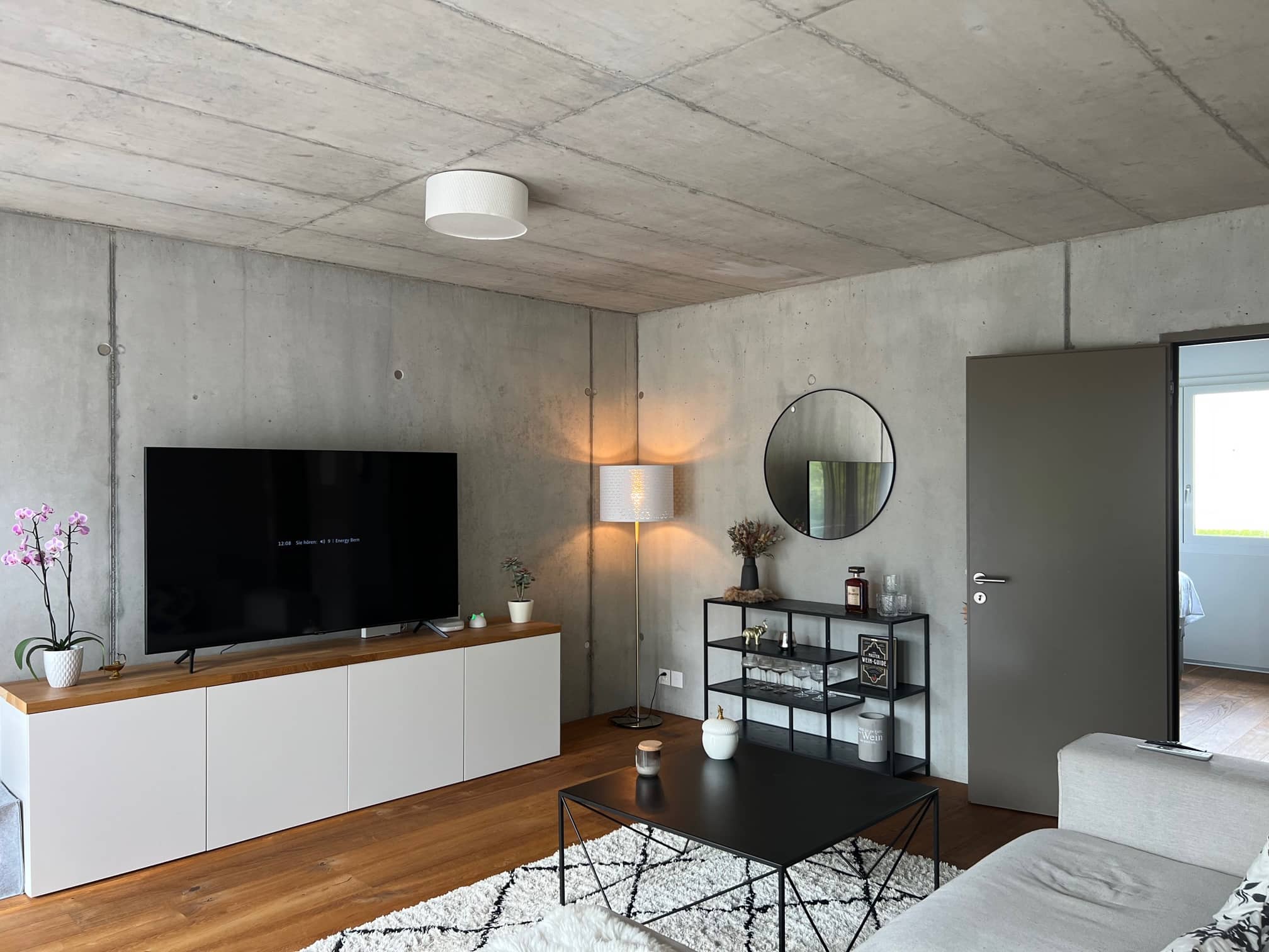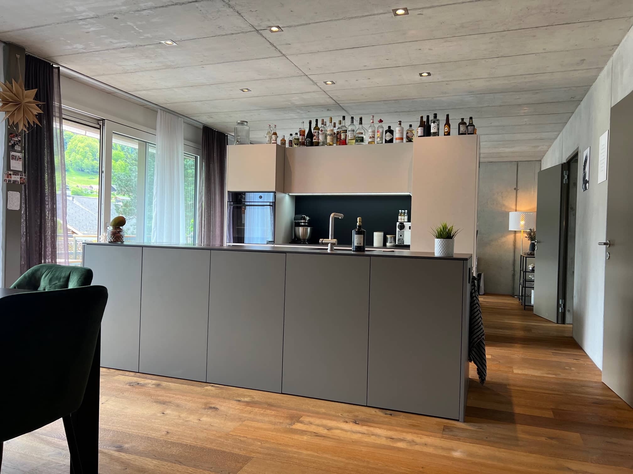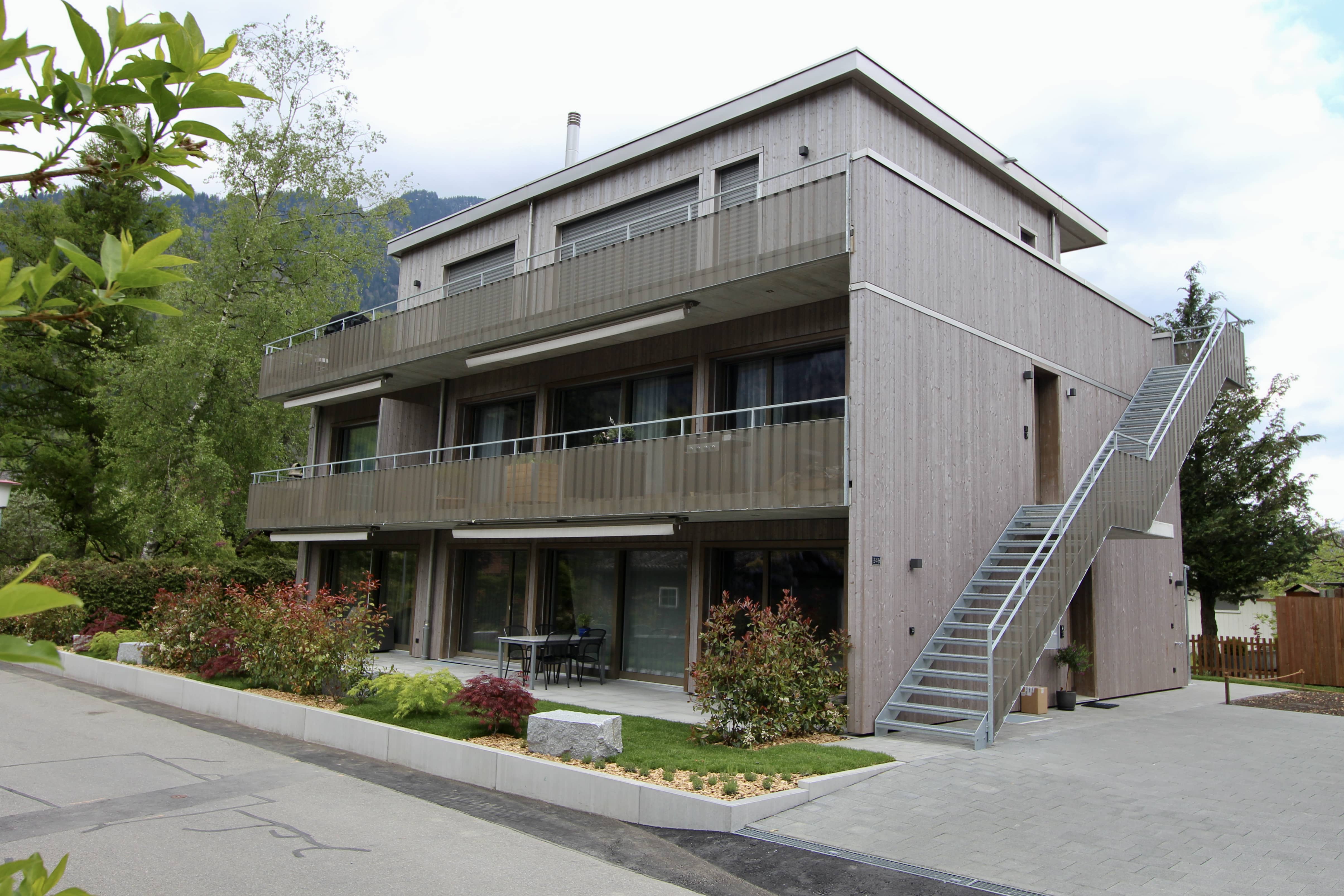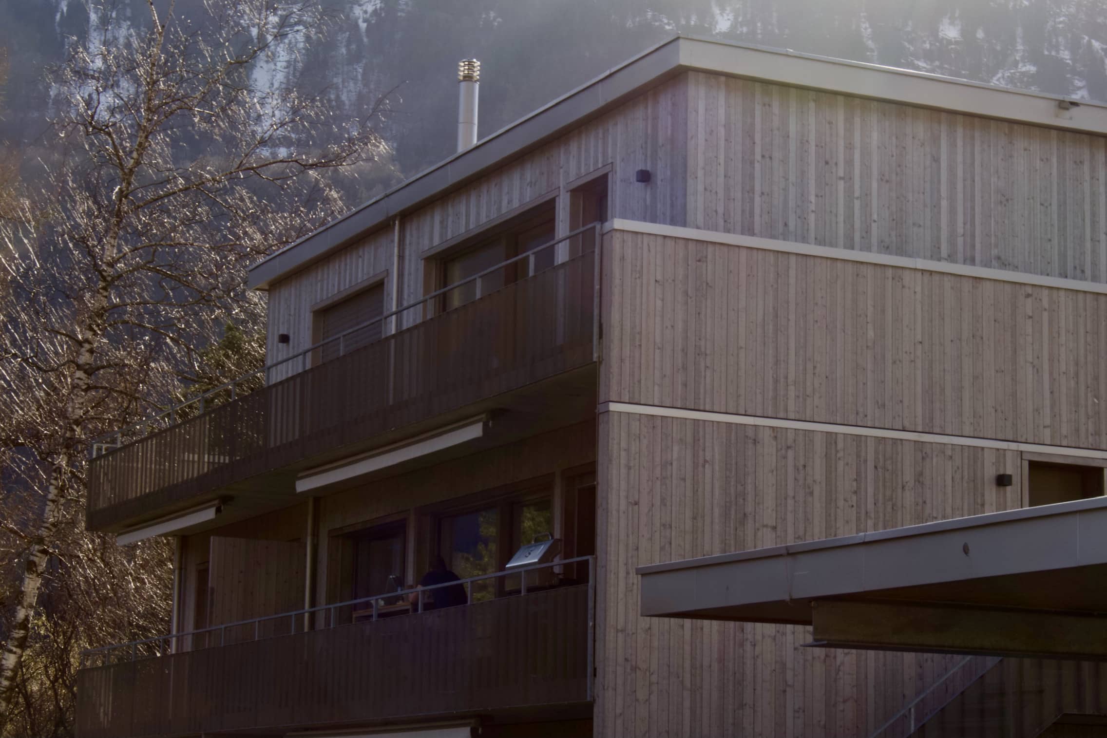 Sandstrasse 34b 3860 Meiringen Baujahr: 2018Das Vierfamilienhaus in idyllischer Lage setzt sich aus einem Loft über zwei Geschosse, zwei 3.5-Zimmer Wohnungen und eine Attikawohnung mit grosser Terrasse zusammen. Der Ausbaustandard des Lofts und der 3.5-Zimmer Wohnungen ist hoch mit grossen Küchen und Bädern, hochwertigem Parkett und modernen Sichtbetondecken. Die Attikawohnung im Speziellen ist ein kompletter Holzbau. Mit dem Gedanken der Nachhaltigkeit wurde das Objekt in Skelettbauweise mit Holzbau-Fertigelementen geplant.