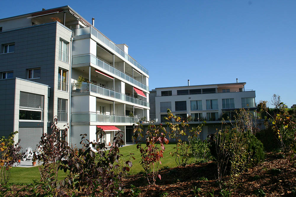 Schulhausgasse Rubigen Baujahr: 2004Das Objekt in Rubigen überzeugt auf mehreren Niveaus und sorgt dafür, dass sich die Bewohner besonders wohl fühlen. Der passive Diskurs zwischen weichen, warmen und harten, kalten Materialien sorgt für eine Harmonie, die mit farbigen Wänden und Mustern akzentuiert und verstärkt wird.